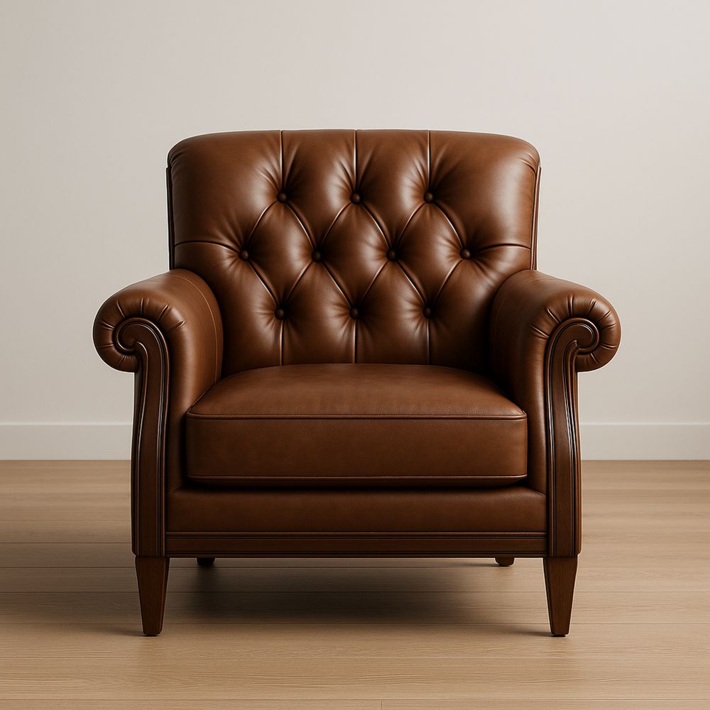 Poltrona in Pelle Marrone con Struttura in Legno Massello